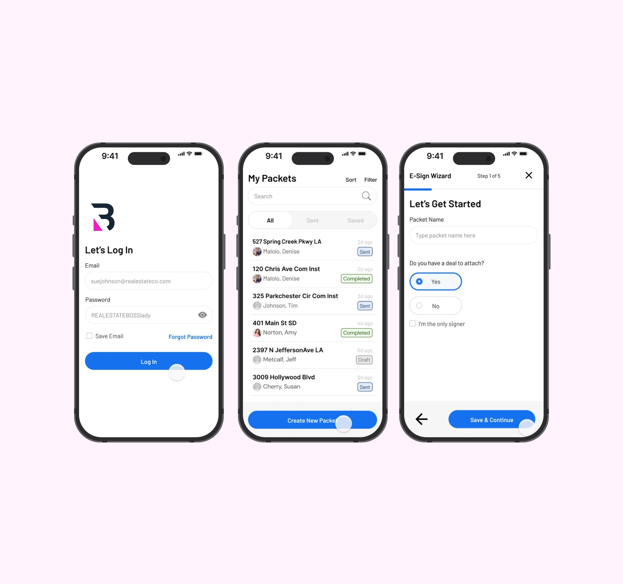 Signing and sending documents is a core action of any professional realtor. I helped make our realtor users work less painful by designing the electronic signature mobile app which empowers users to easily sign, send, and track documents.